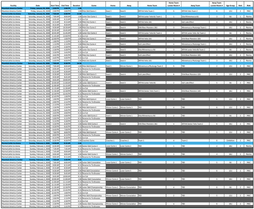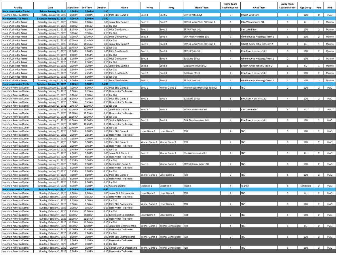 Idaho Cup Tournament Schedule