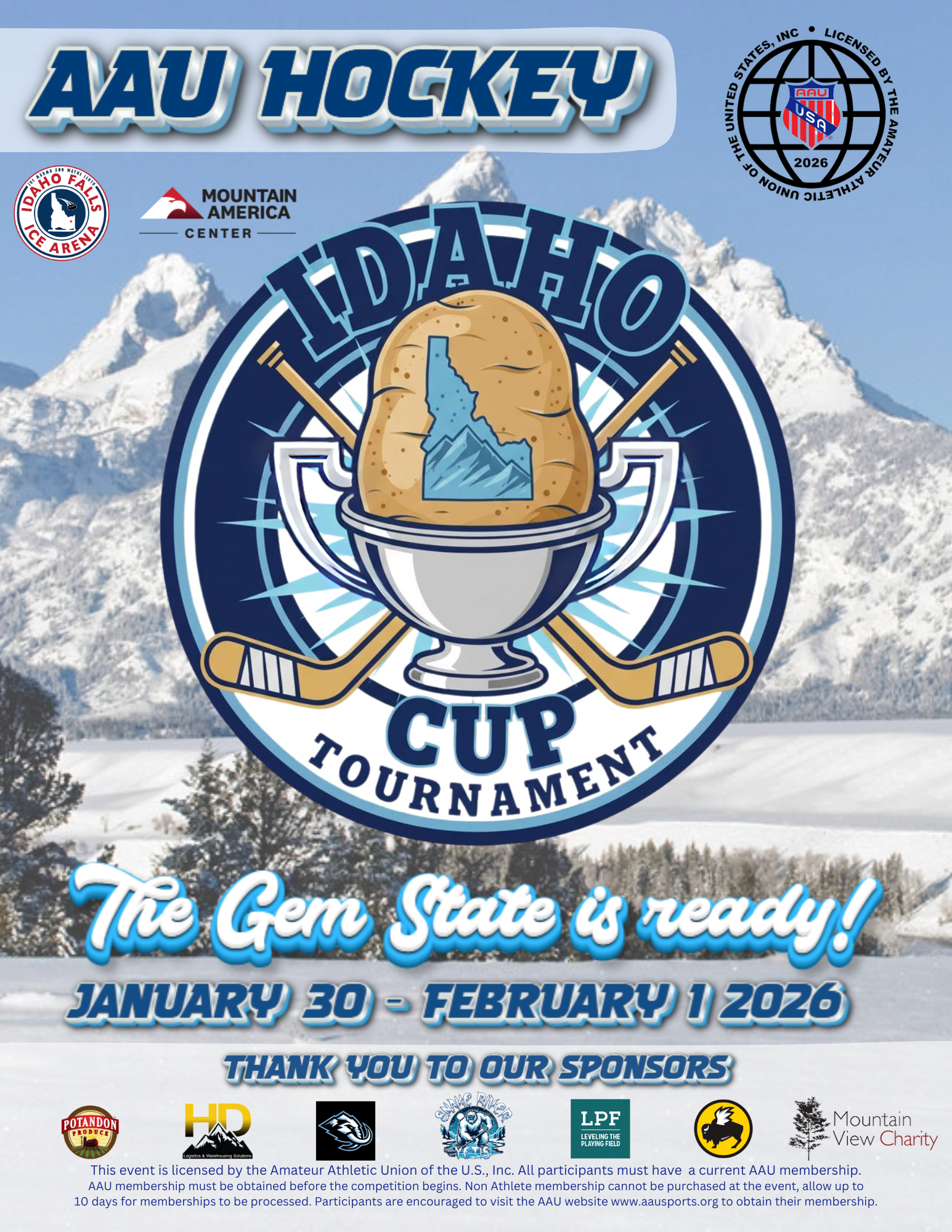 Welcome to the registration site for the first annual Idaho Cup amateur hockey tournament. The Idaho Cup is an AAU licensed youth ice hockey tournament hosted in Idaho Falls, Idaho. Please read through all tournament details below before registering.